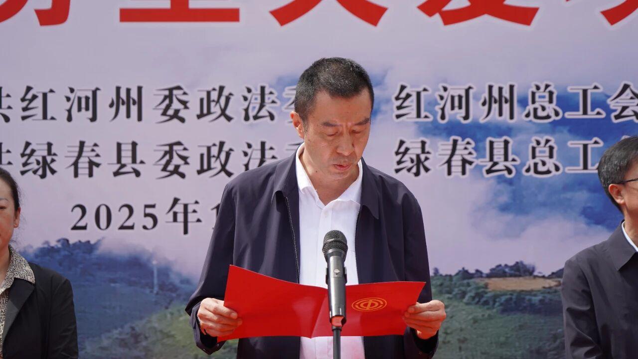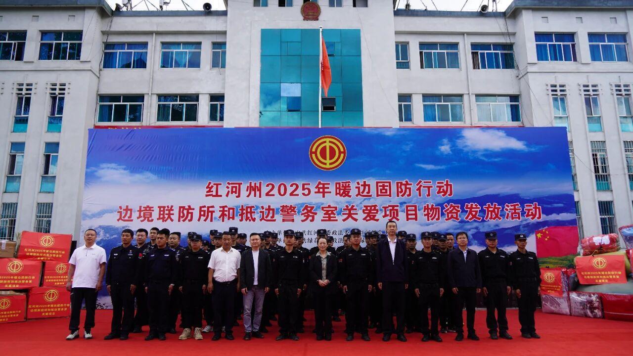 10月27日,红河州2025年“暖边固防”行动边境联防所关爱项目物资发放活动在绿春县平河镇举行。州政协副主席、州总工会主席张艳梅,州政协副秘书长郭健,州委政法委副书记、州边防办主任李勋,州总工会党组成员、副主席段炜,绿春县总工会党组书记、主席李成昆出席活动。