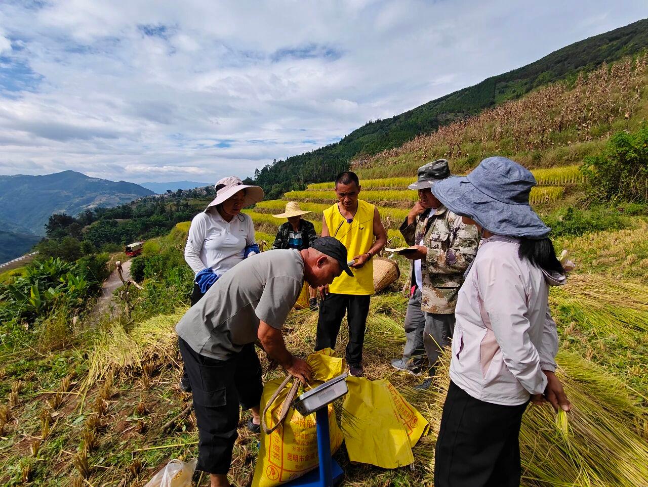 金秋时节,戈奎乡处处洋溢着丰收的喜悦。在加梅村委会格波村旱地优质稻种植示范点,一场关乎农业发展的丰收测产工作正有序推进——由绿春县农科局牵头,戈奎乡农技工作人员协同参与,农技人员带着专业工具深入田间,只为精准掌握旱地优质稻产量,为后续农业优化提供扎实数据支撑。