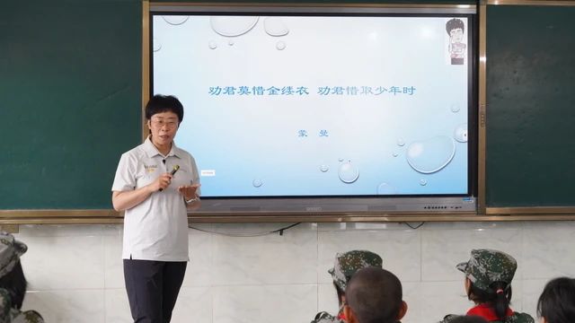 而最令孩子们期待的时刻终于到来——蒙曼教授亲自为他们上了一堂精彩的古诗课。在课堂上,蒙曼教授以“边.城.绿.春”“四字”为主题,用渊博的知识和深入浅出的讲解方式,详细讲述了四首唐诗的词句背后意义,引领孩子们领略了古诗的无穷魅力。她以唐诗《金缕衣》作为课堂的结尾,告诫孩子们要珍惜时光,趁着年轻勇敢地去追求梦想并付诸实践。同时,教导孩子们要保护好家园,因为保护好家园就是保护好国家,希望孩子们能够茁壮成长,成为守护家园的坚强后盾。