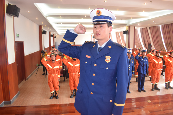 仪式在庄严的国歌声中拉开帷幕,绿春县消防救援大队大队长郭俊兵同志宣读了援衔命令;绿春县消防救援大队副教导员刘涛同志领誓进行了集体宣誓。