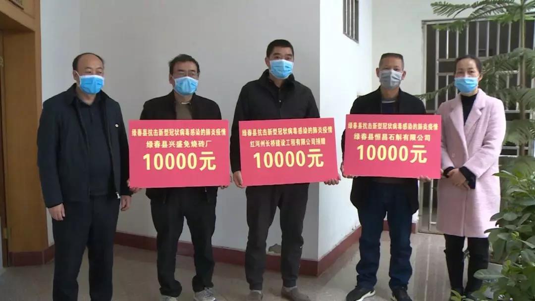 自2月2日,我县发布《抗击新型冠状病毒感染的肺炎疫情物资和款项捐赠倡议书》后,短短一周多时间,我县爱心企业及爱心人士勇于担当、快速行动,以强烈的社会责任感回报社会,踊跃捐款捐物,汇聚爱心力量,齐心协力抗击疫情,为绿春打赢疫情防控阻击战贡献力量。