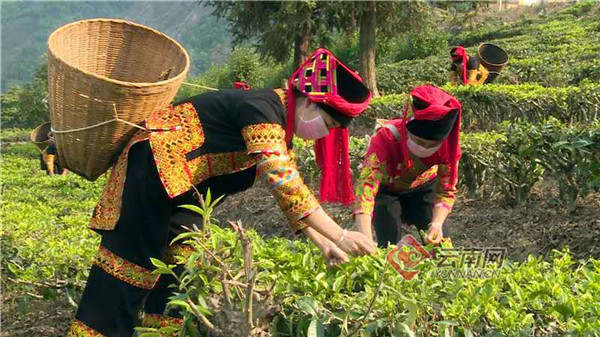 哈尼人民勤劳而又灵巧的双手不停地在茶树上采摘着春芽