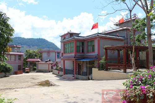 街道中间的绿化树下,三角梅开得正艳。绿化带中水泥杆上,高悬着双向展翅的路灯。路边人家的大门口,也种满了果树和各色的花:芒果树、无花果树,菊花、鸡冠刺桐花、三角梅等。偶有谁家的藤蔓爬上墙头,似乎向来人展示着主人的情趣。