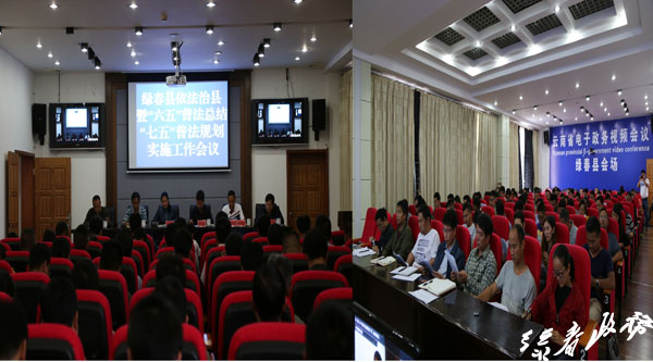 为认真贯彻全州“六五”普法总结暨“七五”普法规划实施工作会议精神,扎实推进绿春县依法治县和“七五”普法规划工作。4月26日,绿春县召开“六五”普法总结暨“七五”普法规划实施工作会议,表彰表扬“六五”普法先进集体和先进个人,全面部署依法治县和“七五”普法工作任务。县人大、县政府、县政协、县委政法委、县公安局、县法院、县检察院相关领导,县委和县级国家机关各部委办局、人民团体、省州驻县单位领导,乡镇分管法治宣传工作的领导、司法局全体人员共计100多人参加了会议。