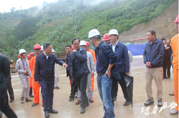 何波一行在元绿高速公路惠民隧道出口施工现场,通过现场查看、观看展板,听取介绍等了解项目的基本情况、进展情况和管理情况。何波强调,在施工过程中,要突出重点,把元绿高速公路项目两大控制性工程放在首要位置推进;要保证工程安全、技术、质量、进度,科学、高效、合理地组织施工,全面推进项目建设;要进一步强化措施,细化管理,明确分工,落实责任。各相关部门领导及施工单位要高度重视,共同努力,加快推进元绿高速公路建设。