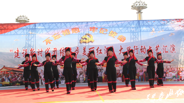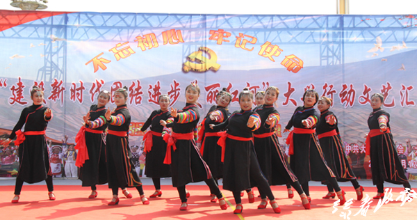 一群哈尼姑娘带来了激情飞扬的开场舞《毛主席的光辉》,舞蹈《再唱山歌给党听》舞出了对党的热爱之情,小品《精准扶贫到我家》道出了各族群众在奋力脱贫,朗诵《不忘初心》一字一句表达出复兴中国梦的担当,独唱《扶贫之路》唱出了干部群众相互扶持齐心脱贫等。文艺节目丰富多彩,内容贴进生活,展示了积极向上、青春靓丽,与观众产生共鸣赢得阵阵掌声。