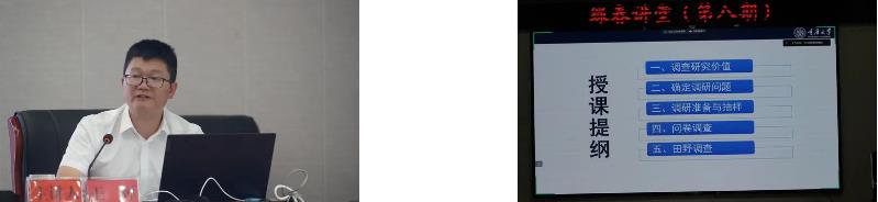 课堂上,王辉围绕调查研究价值、确定调研问题、调研准备与抽样、问卷调查、田野调查五方面讲授调查研究的基本方法、形式和要求,从调研价值入手,对调研问题的选择、如何做好调研前期准备,尤其是如何运用好“望闻问切”等技能开展田野调查并以调研成果推动重点工作落实等方面给予深入的实践指导。