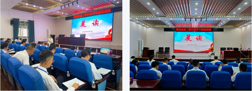 经典晨读晨唱 “子曰:‘温故而知新,可以为师矣’”“弟子规,圣人训。首孝悌,次谨信。”琅琅的读书声不时从教室传出。学员们每天利用早间时间,开展国学经典知识诵读活动,提高学员们的道德修养和思想境界,重新焕发热爱学习、激情奋发、超越自我的精神风貌。学员还充分发挥音乐特长,教授学员合唱红色歌曲《我宣誓》,通过合唱,学员们加深了对“功成不必在我,功成必定有我”的奉献和担当精神的认识,进一步增强了年轻干部接续奋斗的责任感、使命感。