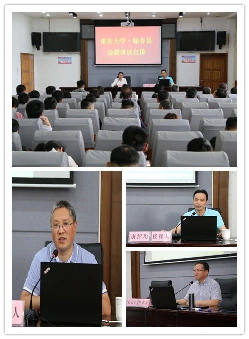 绿春,这个被大山环绕的美丽县城,今天的新面貌是起点而非终点。重庆大学法学院始终坚持靶心不偏、焦点不散,怀揣着让绿春人民过上更好的生活的心,做好巩固拓展脱贫攻坚成果,积极谋划、认真落实绿春乡村振兴工作,加快推进帮扶地区乡村全面振兴,为打造更加和谐美丽的绿春不懈努力!工作组师生走进了绿春县人民法院,了解基层人民法院工作状况,并代表重庆大学向绿春县人民法院捐赠了电脑、便民服务柜、安保闸机等物品,帮助其改善办公条件,为群众提供更多便捷。工作组师生还参观了绿春县博物馆,了解绿春县的发展历程。 工作组教师在绿春县行政中心开展了“重庆大学·绿春县边疆普法宣讲”专题讲座,宋宗宇教授、唐绍均教授、肖洪副教授分别从“《建工合同司法解释一》的裁判理念与方法”“检察公益诉讼的类型拓展与办案规则”“刑事案件办案理念的变化”等三个主题进行了讲授,拓宽干部法律视野,提高适用法律能力。 工作组师生在平河镇司法所“重庆大学•平河镇法律诊所”与边疆基层干警开展咨询交流,围绕当前司法实践开展情况、习俗习惯与法律法规产生冲突时的解决方案、经济纠纷调解、社区矫正等方面的问题进行了讨论。工作组师生在平河镇集市面向平河镇居民开展普法宣传活动,通过设置咨询点、发放宣传资料及宣讲等方式着力宣传《民法典》。 重庆大学法学院是重庆大学“美丽乡村”项目牵头单位,2020年依托专业优势在绿春县平河镇构建了“三个一”平台:一个加油站——美丽乡村拉祜寨“法律加油站”;一个诊所——重庆大学•平河镇法律诊所;一个基地——重庆大学平河中学法律援助实践基地,致力于建立边疆爱国主义教育和法治宣传教育长效机制。 “学党史、办实事——法助绿春乡村振兴”工作组由重庆大学法学院党委副书记刘淳带队,包括民商法学科负责人宋宗宇教授、环境与资源保护法学系主任唐绍均教授,法学院纪委委员、刑法学系肖洪副教授等师生共12人。绿春县副县长李晓忠、王辉陪同调研,县人民政府、人民法院、平河镇干部、拉祜寨驻村工作队队长、重庆大学派驻绿春扶贫干部积极联络并协助开展相关工作。