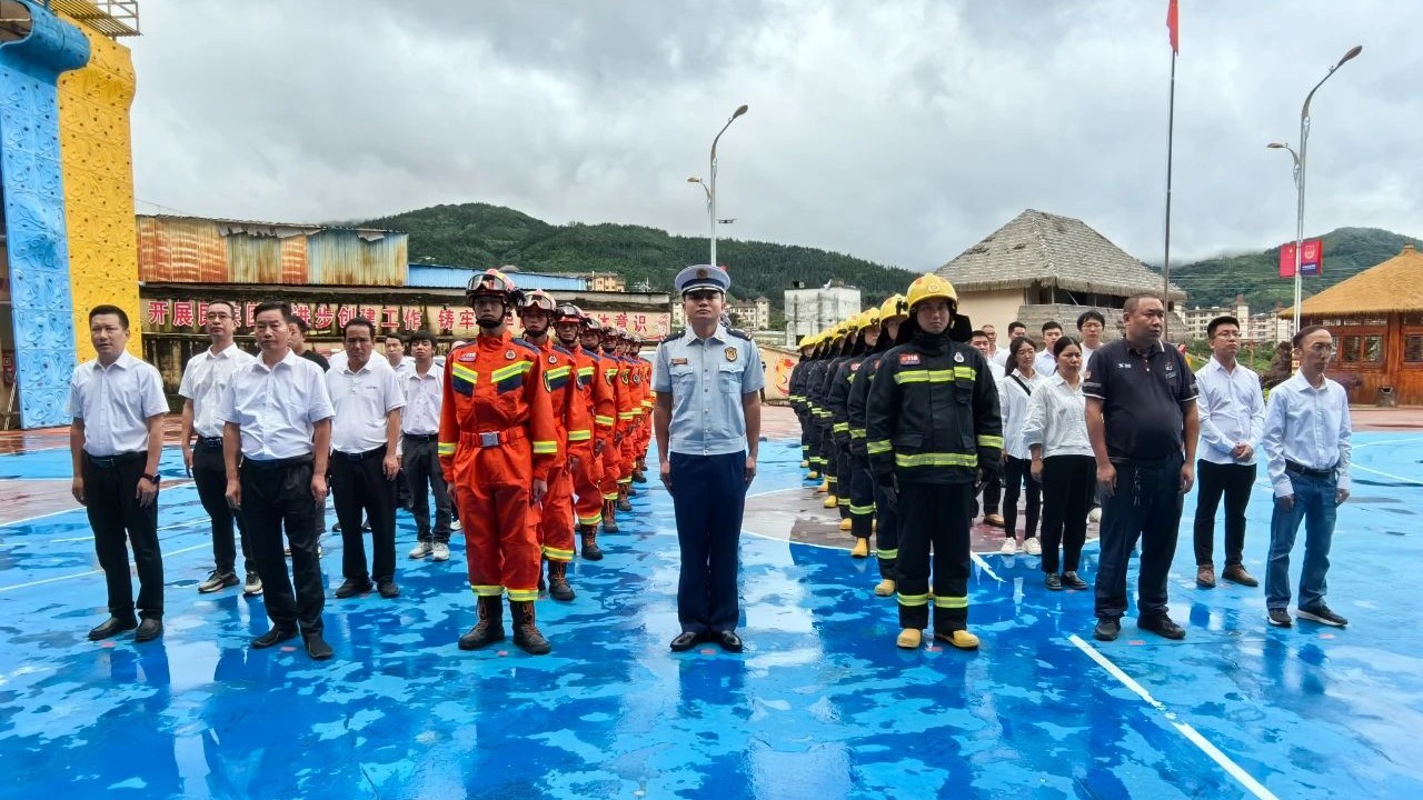 仪式现场,县级与会部门及全体消防救援人员整齐列队、精神饱满,共同奏唱中华人民共和国国歌。