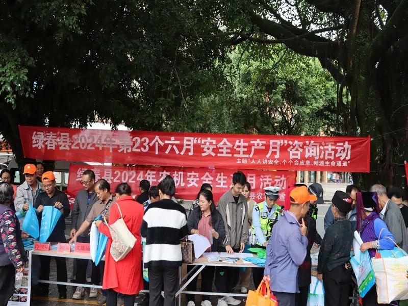 今年6月是第23个全国“安全生产月”,主题是“人人讲安全、个个会应急、畅通生命通道”。为切实提高广大交通参与者的交通安全意识,预防和减少道路交通事故发生,绿春交警借力“安全生产月”咨询活动,开展“美丽乡村行”道路交通安全宣传活动。