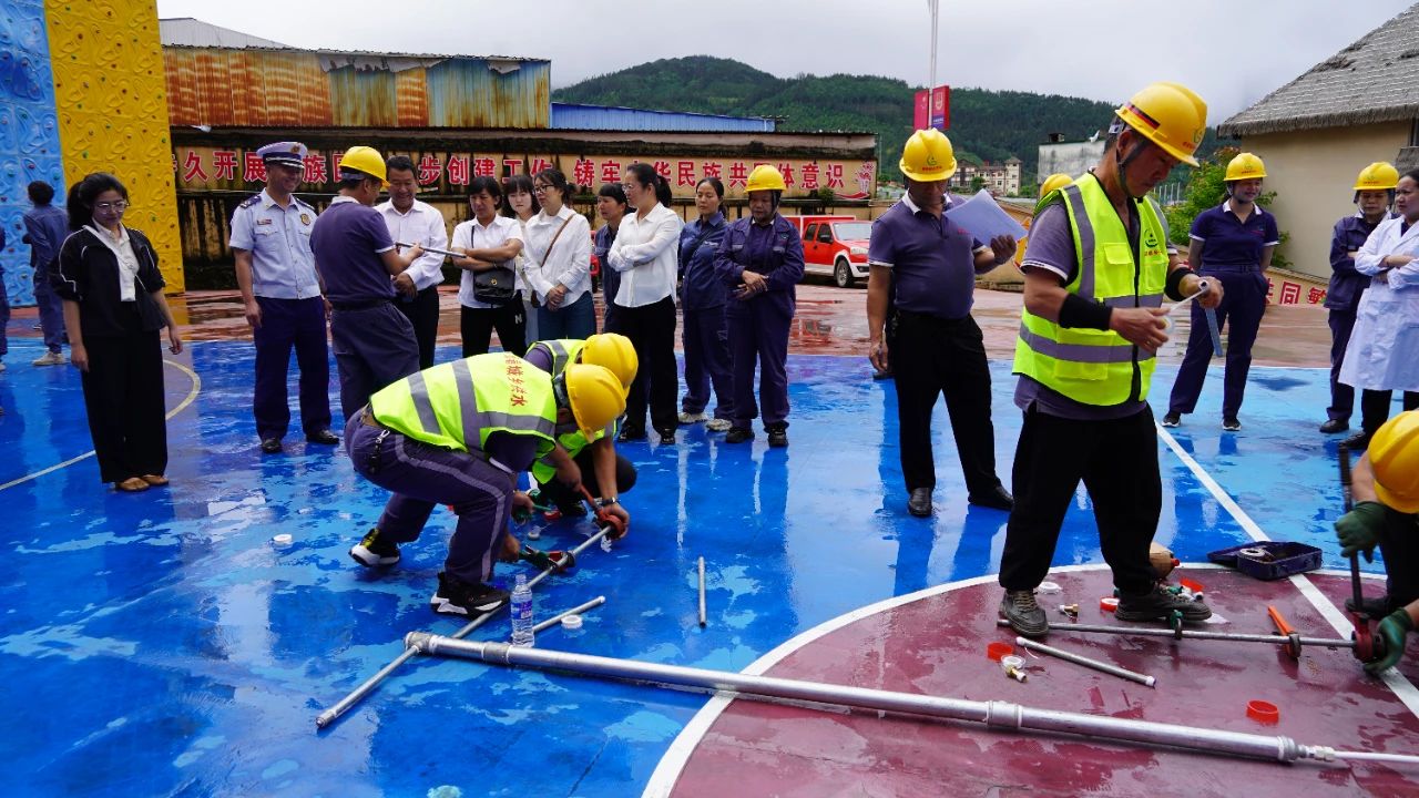 绿春县供水有限公司首先开展水管入户安装竞赛和水质检测竞赛;消防救援大队则开展了绳索攀爬上四楼、挂钩梯上四楼、一人两盘水带连接操竞赛,现场气氛热烈,选手们个个精神饱满、斗志昂扬,他们凭借精湛的技能和丰富的经验,在比赛中展现出了高超的水平。