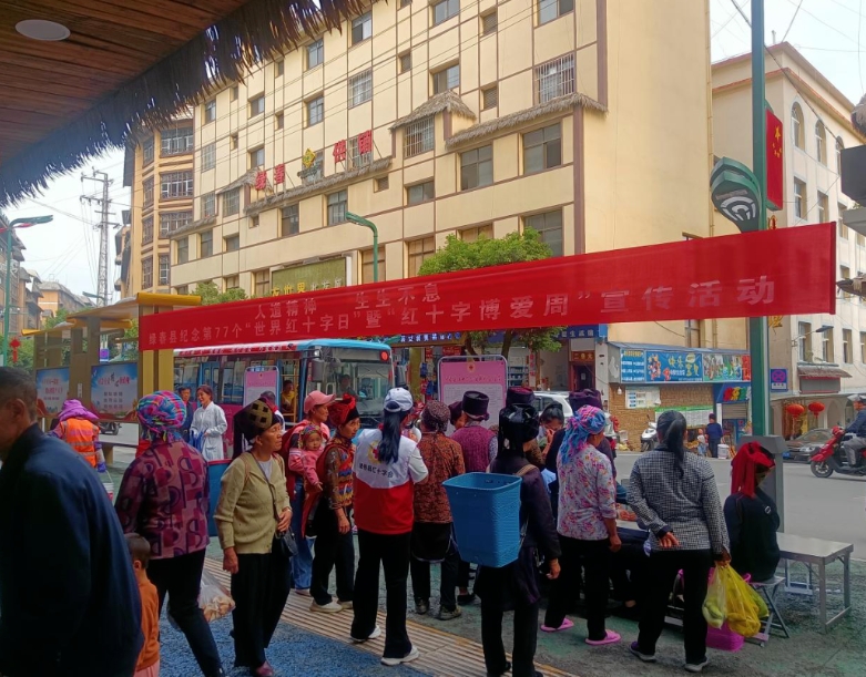 近日,绿春县红十字会在农贸市场门口设点开展集中宣传。活动中,绿春县红十字会邀请仁华医院医生为辖区市民群众开展义诊,现场为市民群众测量血压、血糖,发放礼品、宣传资料,并接受群众咨询,现场讲解应急救护、应对意外伤害等相关知识,提高群众健康意识。向群众发放活动倡议书,讲解“5·8人道公益日”众筹活动的具体内容,指导群众现场扫码捐款。同时,普及红十字知识,介绍红十字会救助政策,号召更多的人参与到活动中来,为需要帮助的人们奉献自己的爱心和力量。