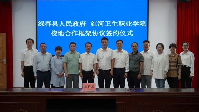 5月9日,绿春县人民政府与红河卫生职业学院校地合作框架战略协议签约仪式在县行政中心举行,拉开双方深化合作、互惠共赢的新篇章。县委副书记、县长张猛与红河卫生职业学院党委副书记、院长唐飚签约并讲话,县委常委、副县长黄伯运主持签约仪式。