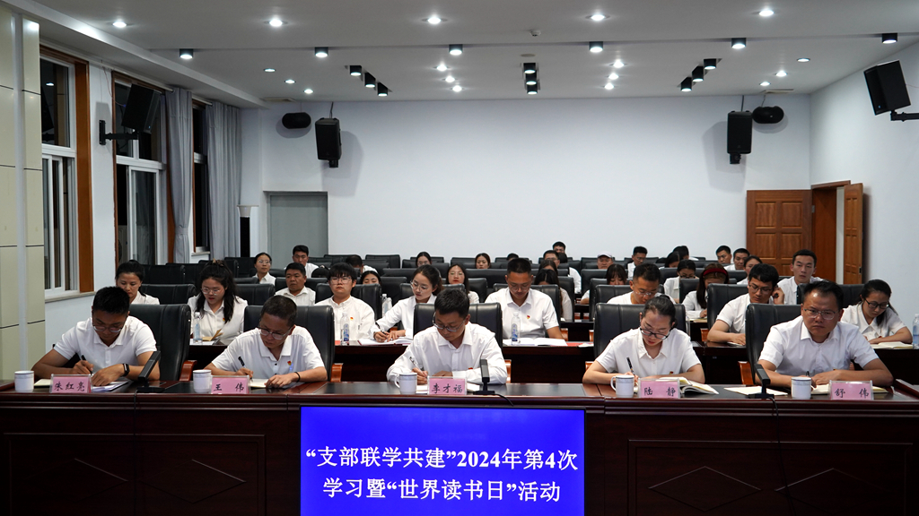 在第29个“世界读书日”之际,县委办、县政府办、县委组织部、县委宣传部、县委社工部于4月24日开展了2024年第4次“支部联学共建”学习暨“世界读书日”活动。县委书记何阳,县委常委、县委组织部部长赵国辉,副县长高翔以普通党员身份参加活动并分享读书心得、推荐好书。