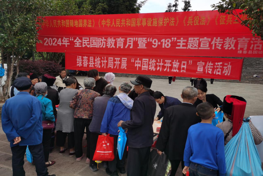 近日,在第十五届“中国统计开放日”之际,绿春县统计局联合县委宣传部、县国防动员办、县发改局、县退役军人事务局等5家单位在县街心花园,举办以“数览发展 向新而行”为主题的第十五届中国统计开放日宣传活动。