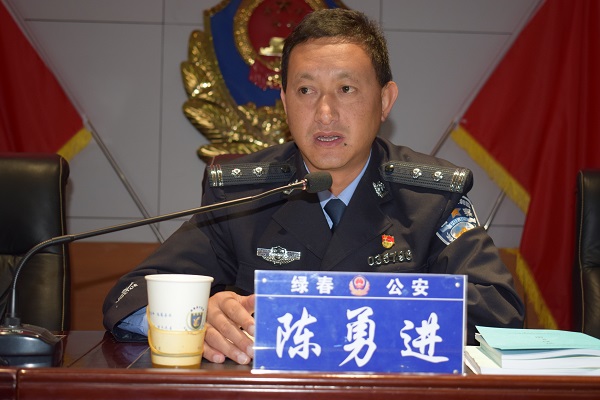 10月12日下午,绿春县公安局召开第十次党委理论中心学习组(扩大)会,会议共有四项议程,由局党委书记、局长陈勇进主持,参会人员有党委班子成员和全体在家民警。