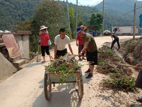活动期间由卢荣华书记带领12余名志愿者深入到部门挂钩联系帮扶村进行卫生清扫。志愿者们热情高涨,积极发扬不怕苦不怕累的精神,道路两旁及村寨周围的杂草铲除干净。