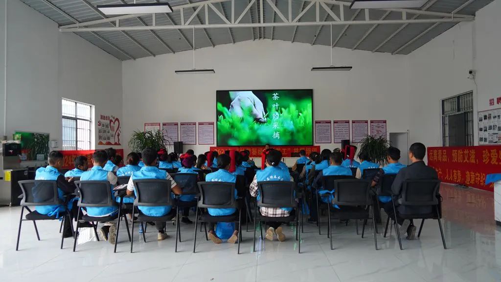 采茶工们满怀期待地齐聚一堂、认真听讲、积极提问,培训现场气氛热烈。在理论培训中,学员们将学习茶叶的生长环境、品种特点以及采摘标准等;而在实践环节,他们将亲身体验采茶的过程,掌握正确的采摘手法和技巧。