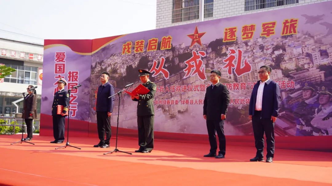 志存高远励青春,建功立业赴军营。3月16日,绿春县2025年上半年新兵入伍欢送仪式暨全民国防教育“进校园”在绿春县城举行,为即将踏上军旅征程、投身强军伟业的绿春儿女壮行!军地领导及各族各界人士共同为光荣入伍的新兵送行。