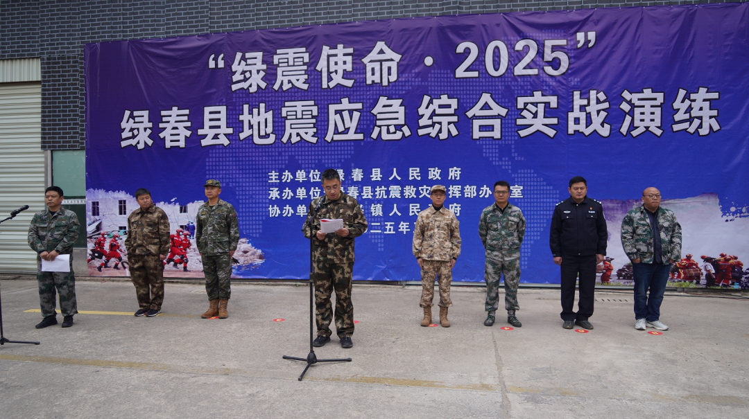 3月20日,绿春县组织开展“绿震使命·2025”地震应急综合实战演练。县委书记、演练总指挥长何阳宣布演练开始,全程指挥并作讲话,县委副书记、县长、演练指挥长张猛宣布启动《绿春县地震应急预案》I级响应并作讲话。
