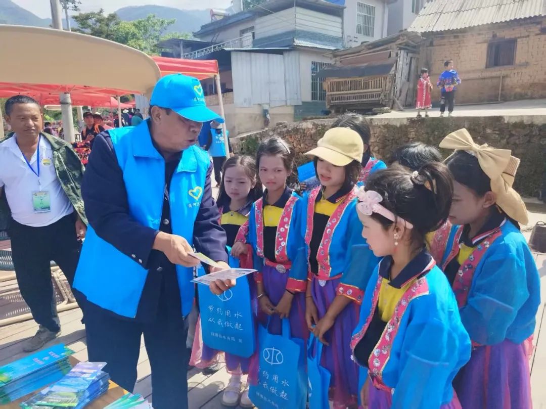 活动现场,县、乡、村干部和志愿者走进三猛乡桐株哈尼梯田田间地头,向村民宣传节水知识,讲解农村节水方法和节水科学小常识,带动村民观念由“被动节水”向“主动节水”的转变,引导村民主动参与爱水、护水、节水行动。同时,绿春县自行车运动协会利用哈尼梯田徒步观光游活动和乡村振兴名特优产品展示展销活动,将节水宣传标语粘贴在运动员的后背上,开展流动宣传,并积极协助发放节水宣传资料,进一步提升了宣传效果。