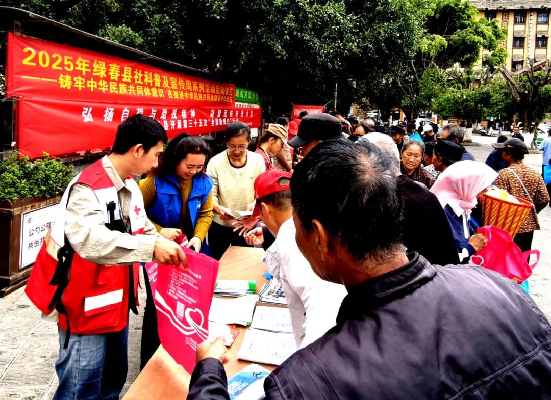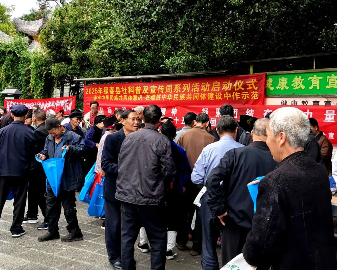5月17日上午,以“铸牢中华民族共同体意识 在推进中华民族共同体建设中作示范”为主题的2025年绿春县社会科学普及宣传周活动启动仪式在街心花园举行。