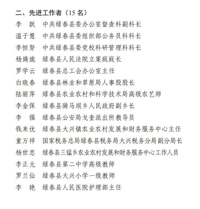 何阳强调,全县广大职工和劳动群众要凝聚奋进力量,围绕全县“7+N”农林特色产业体系及10项重点工作和10大重点项目,立足绿春山区实际,积极探索智慧农业,借助科技创新推动产业提质增效,加快执行力度,勇于拼搏创新,创造更多“绿春速度”和“质量精品”;要培育优秀人才队伍,夯实发展根基,保障劳动者权益,构建和谐劳动关系,树立终身学习理念,深化实践创新,健全人才培养机制,让广大劳动者安心工作、舒心生活,在绿春这片土地上安心筑梦、实现价值。