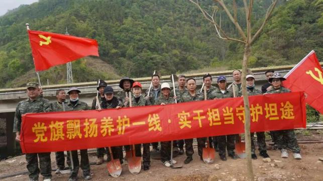 植树现场,大家热情高涨、分工协作,挥锹铲土、扶苗扶正,每一道工序都认真细致、规范有序。此次活动共栽植紫花风铃木100余棵,大家现场人均认领一株,扛起管护责任,确保“种一棵、活一棵、绿一片”。一株株新栽苗木整齐排列、迎风挺立,为蜿蜒的国道219沿线增添了盎然生机与亮丽色彩。