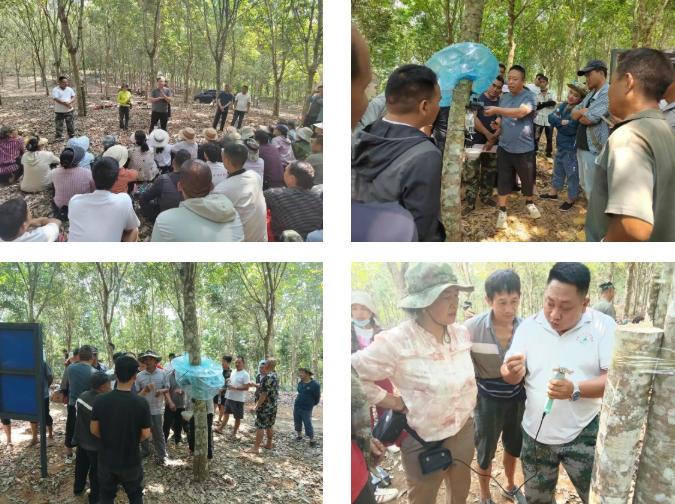 聚焦理论教学强根基。科研专家针对本地胶园土壤退化、树龄老化、病虫害高发等问题,系统讲解土壤改良、科学施肥、树冠修剪及病虫害绿色防控技术,深入浅出普及科学管护知识,夯实胶农理论基础。