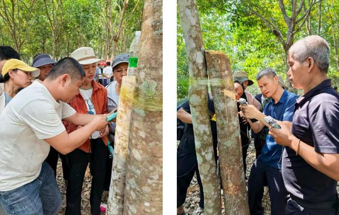 聚焦智能胶农育新人。全程贯穿“学科学、用科技、懂智能”培育理念,普及智能管护设备应用知识,为参训胶农发放电动割胶刀,推动胶农从传统经验型向科学智能型转变。