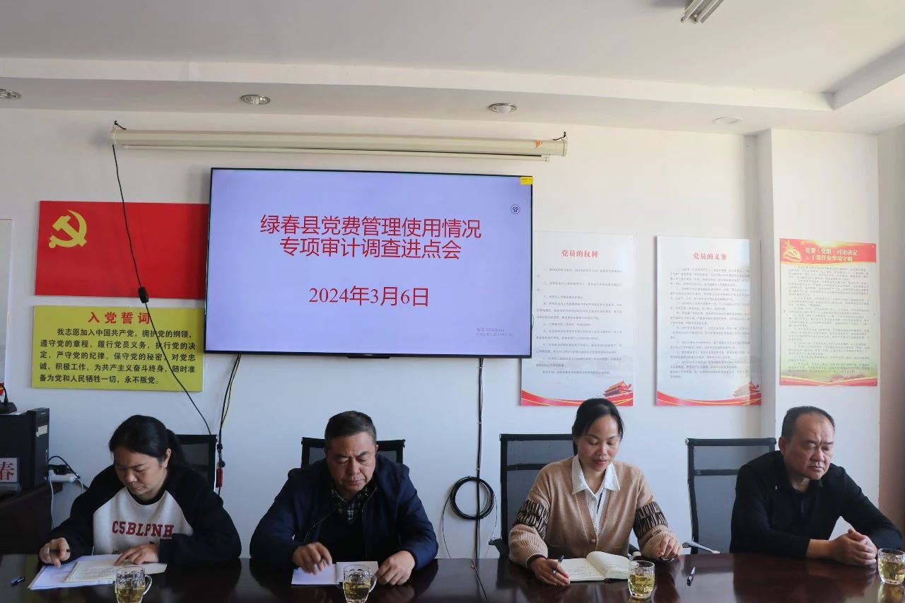 为深入贯彻落实党费收缴使用管理的有关规定,加强对日常党费收缴使用管理的监督。绿春县审计局通过查看资料与现场调研、全面审计与抽样审计等方式对全县2020至2023年党费收缴、管理和使用情况开展了专项审计调查。