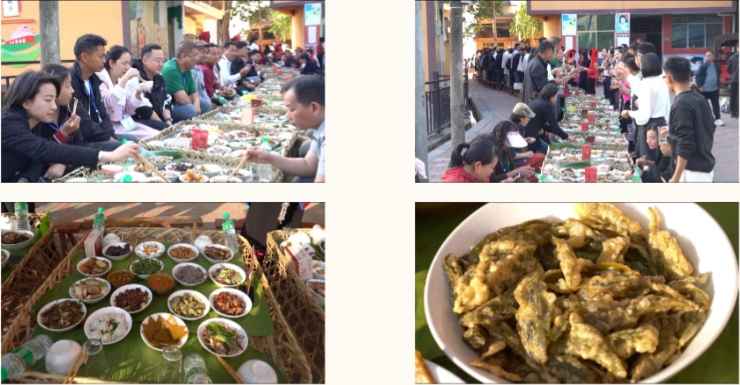 在绿春茶叶宴中,酥茶叶这道菜尤其受到游客们的喜爱。这道菜选用当地新鲜的春茶与土鸡蛋搭配,裹上酥肉粉拌匀油炸即可,茶叶的清香与鸡蛋的鲜美相互融合,口感酥脆独特,令人回味无穷。