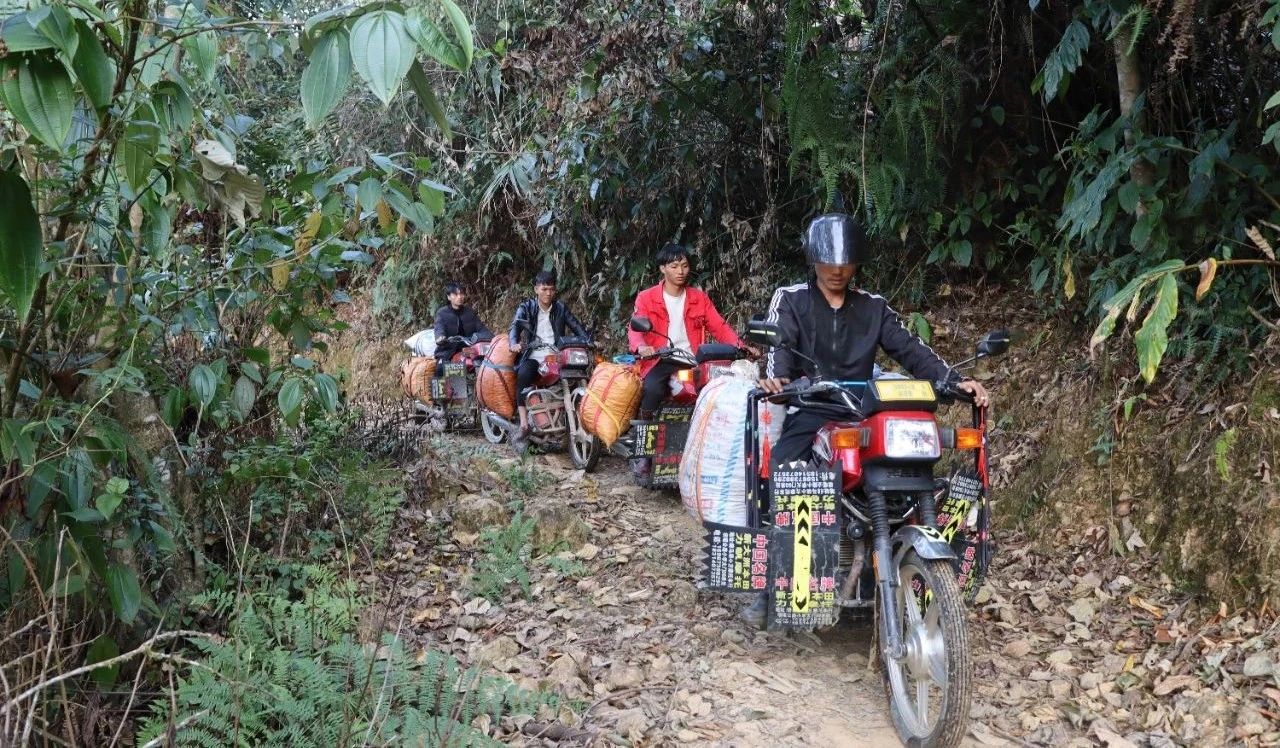 随着一天的忙碌,果农们也背起了辛苦所获的“春果”,踏上了回家的路上,一路上,他们有说有笑,讨论着今天谁家摘的八角多、谁家的八角长得好,畅谈着幸福美好的生活。当然,村里会骑摩托车的年轻人也不闲着,他们骑着摩托车在新建的“产业路”上拉着今日的成果赶往家里。