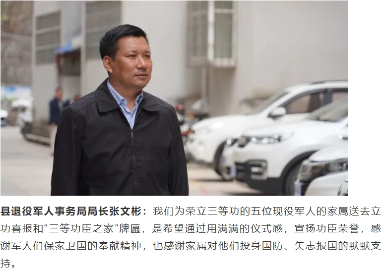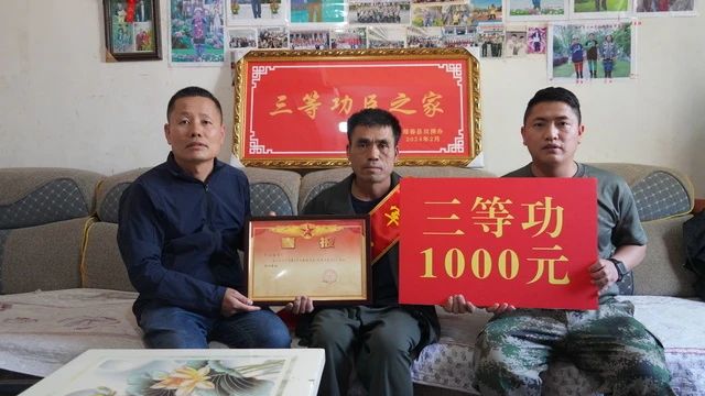 一份喜报,满载荣誉。近日,县委常委、副县长黄伯运率县人武部、县退役军人事务局及各乡镇相关领导到五名荣立三等功的现役军人家中,向其家属送上立功喜报和慰问金,并对其军属表达热烈祝贺和崇高敬意。