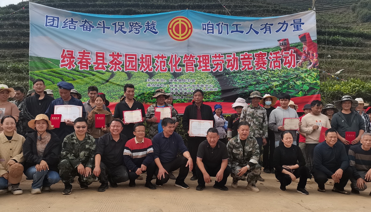为深入学习贯彻党的二十大精神、全面贯彻习近平新时代中国特色社会主义思想、习近平总书记关于工人阶级和工会工作论述摘编以及中国工会十八大精神,推动绿春县新时期产业工人队伍建设改革进程,加快茶业行业高技能人才培养,促进茶产业提质增效,不断提高绿春茶叶生产效率,提高茶园管理者的技术水平。大力弘扬劳模精神、劳动精神、工匠精神,充分发挥劳动竞赛活动在经济社会发展中的引领和带动作用,认真谋划,紧扣“团结奋斗促跨越、咱们工人有力量”活动主题,举办了为期30余天的绿春县首届规范化管理劳动竞赛活动,切实将劳动竞赛活动作为提升管理效能、实现创新创效的有力载体,为推进绿春高质量跨越式发展作出积极贡献工会智慧和力量。