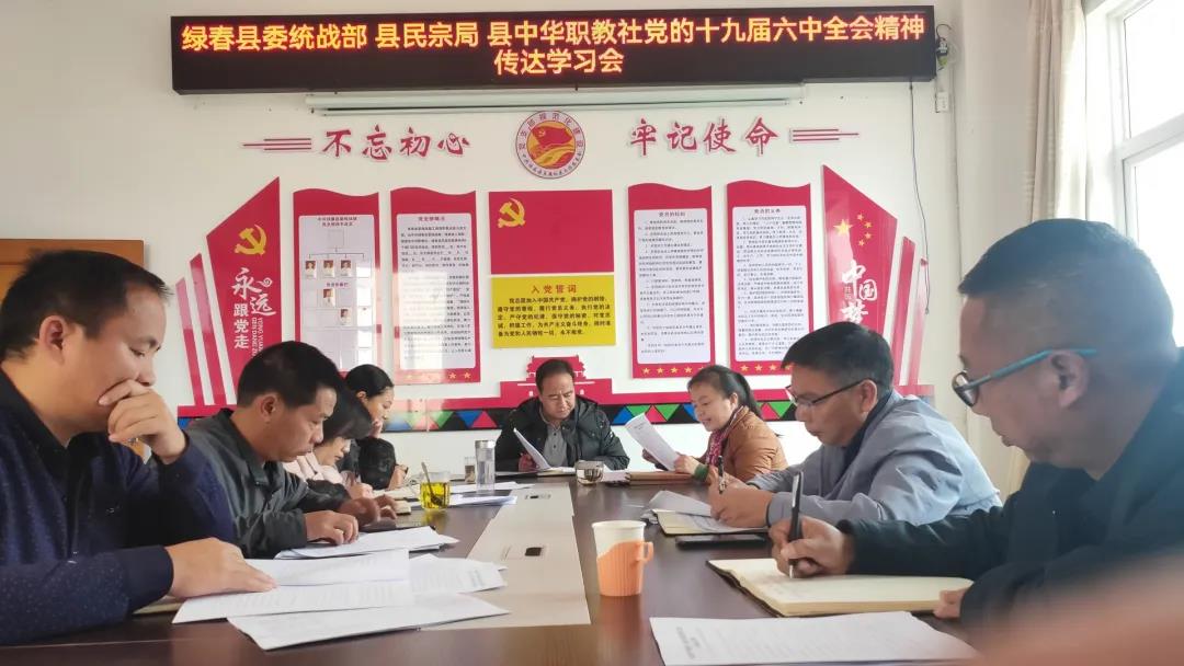 11月15日下午,绿春县委统战部组织县民宗局、县中华职教社及全体干部职工,传达学习党的十九届六中全会精神,要求全体统一战线干部职工先学一步、学深一步,迅速掀起学习和宣讲党的十九届六中全会热潮。县委常委、县委统战部部长卢光荣出席会议。