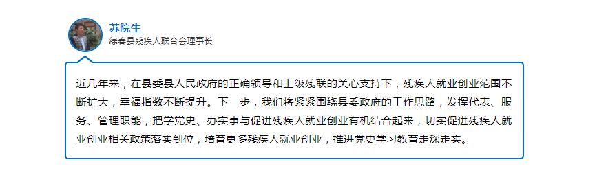为解决残疾人就业创业,全面提升对广大残疾人的扶贫服务能力和水平。一直以来,绿春县残联多形式拓展残疾人就业渠道,结合实际,积极打造扶贫、就业示范基地,以社会支持创业,劳动者创业创新的生动局面,帮助残疾人打通“幸福通道”,让残疾人群体通过自己的劳动,提升生活质量,不断增强残疾人获得感和幸福感、安全感。