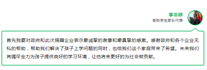 活动现场,施德能为此次提供助学资金的企业颁发了荣誉牌匾,并发表致辞,对受助学生送上祝福;各单位负责人就资助情况作了说明;受助学生代表发言致谢。