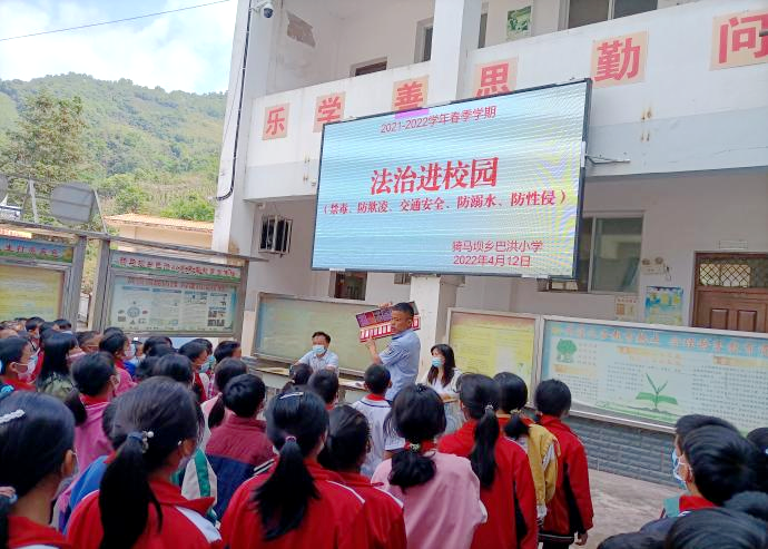 为提高未成年人法律意识、自我保护意识,近日,绿春县骑马坝边防派出所走进骑马坝中心完小,开展“法制宣讲进校园”活动。