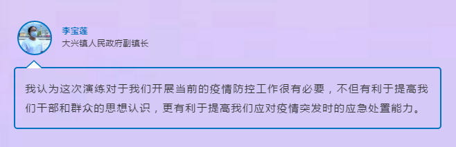 通过应急演练,使相关工作人员进一步熟悉了新冠肺炎疫情防控流程,全面提高了全镇新冠肺炎疫情防控应急指挥和组织协调能力,提高了全镇社区干部群众应对新冠肺炎疫情突发状况能力,全面检验了应急预案的可操作性和效果,为进一步做好疫情防控工作打下坚实基础。