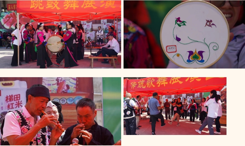 在“非遗集市”展示展演现场,设置了跳鼓舞、传统歌舞、彝文、毕摩文、彝族服饰、刺绣、剪纸等展演区,各类传统手工艺品琳琅满目,目不暇接。精美的彝族刺绣,构图精巧,色彩鲜艳,针法细密,令人叹为观止。地道的民族服饰,款式别致,做工精良,体现了民族特色和文化传承。独特的彝族跳鼓舞,舞姿优美,节奏欢快,展现了彝族人民的豪情和活力。优美的民族乐器演奏,曲调悠扬,节奏明快,令人陶醉其中。每一件作品、每一个动作、每一首乐曲,都蕴含着深厚的文化底蕴和精湛的工艺技艺,令游客们赞叹不已,活动让他们更加深入地了解了彝族文化,也让他们对传统文化产生了更加浓厚的兴趣。