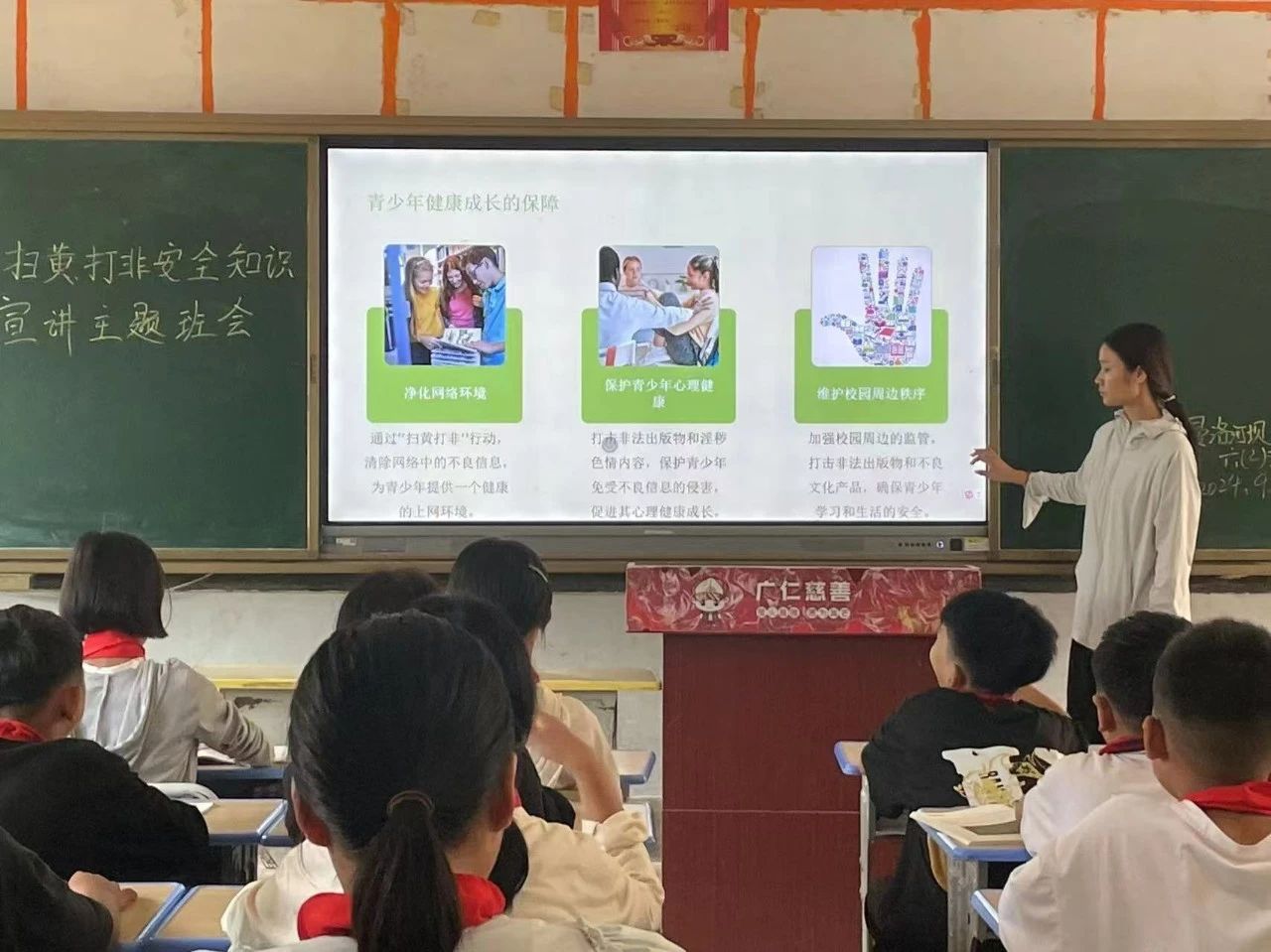 活动中,向同学们播放了一系列寓教于乐的短视频,涵盖防止隔空猥亵、抵制不良动漫、提高新型技术应用的风险意识、反对畸形审美以及防范不良行为诱导等主题。视频中的案例贴近生活,直击问题要害,让孩子们在轻松的氛围中认识到自我保护的重要性。同时,老师们还鼓励学生们积极参与到“扫黄打非”活动中来,如果发现有疑似非法出版物,应立即向学校、家长或者相关部门报告,不做非法出版物的传播者。