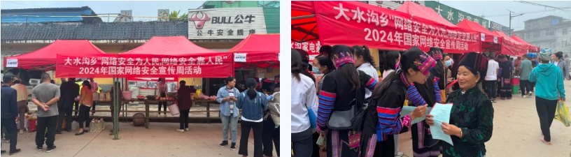 利用民族赶街天契机,组织全乡党员志愿者、巾帼志愿者、青年志愿者对群众进行网络安全相关法律法规的普及和宣传,针对防范电信网络诈骗、个人信息保护、网络安全防护等方面的知识进行现场解读,强化群众网络安全意识,提醒保护好个人信息,科学安全上网。同时充分利用微信微信公众号“雾隐茶乡 多彩水沟”向群众普及网络安全知识,从源头上遏制网络安全事件的发生,促使辖区群众增强网络安全意识、养成良好的网络安全行为习惯、营造文明网络新氛围。截至目前,开展网络安全进社区1次,网络安全进农村9次,发放宣传资料300余份。