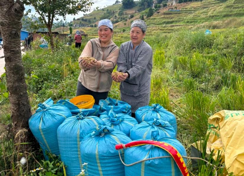 强化推进政策扶持力度,在种子端发放“滇禾优 615”旱稻种,种植端发放农具,管理端发放肥料,促进群众通过降本增效,实现增收。依托朱有勇院士专家团队、专业技术人员等优势,采取“院士团队+党组织+网格化”的管理方式,通过集中培训、田间示范,推广旱地优质稻种植管理技术,引导群众当技术员,提高种植产量。在栽种、抢收环节,聘用当地群众,鼓励群众参与到种植管理上来,实现群众务工和管理增收。