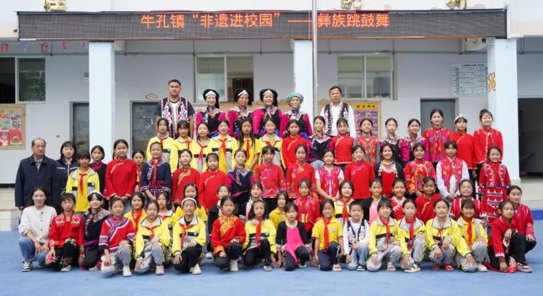 近年来,牛孔镇中心小学以“铸牢中华民族共同体意识”和“非遗进校园”为主题,全力打造一校一品的校园特色,把当地民族优秀文化创新融入教育教学中,为传承非遗注入年轻活力。
