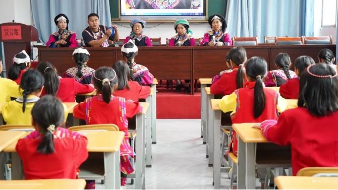 牛孔镇中心小学教师 李迎香:近年来学校开展了“彝族跳鼓舞、彝族刺绣、彝族文化课堂、非遗进校园等等活动”,真正做到了让孩子们在活动中锻炼,在锻炼中传承,让孩子们在优秀民族文化的氛围中健康快乐地成长。