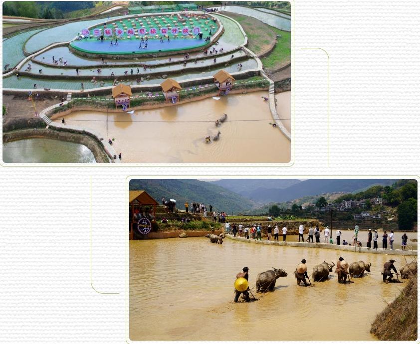 4月19日,当第一缕晨曦洒在三猛乡桐株梯田,一场农耕文明的盛宴将在三猛乡桐株梯田启幕。这场以“万象耕新·开秧纳福”为主题的“开秧门”活动,是哈尼族重要的农事仪式。“开秧门”不仅是春耕的序曲,更蕴含着人与自然和谐共生的智慧。本次活动通过农事体验、文化展演、生态观光、美食盛宴等多元形式,向八方游客展现了千年梯田农耕文明的独特魅力,也为乡村振兴注入新活力。