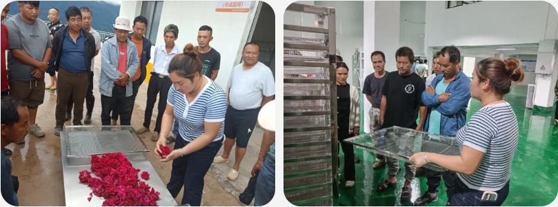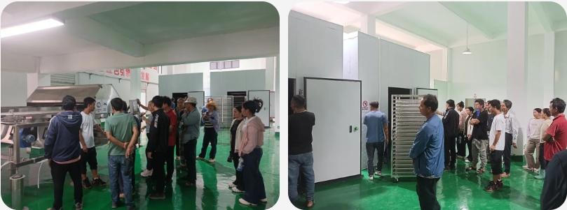 车间观摩学习,增强发展信心理论授课结束后,花农们参观了加工车间。在车间内,大家看到了先进的生产设备和规范的生产流程,对玫瑰花深加工的各个环节有了更深入地了解。致富带头人马薇薇从鲜花的清洗、挑选、烘干到包装进行了专业讲解,通过详细介绍花进产房车间的检验标准、分类方法、分价位策略以及烘烤工艺等关键环节,无不透露着对产品质量的严要求和严把关。