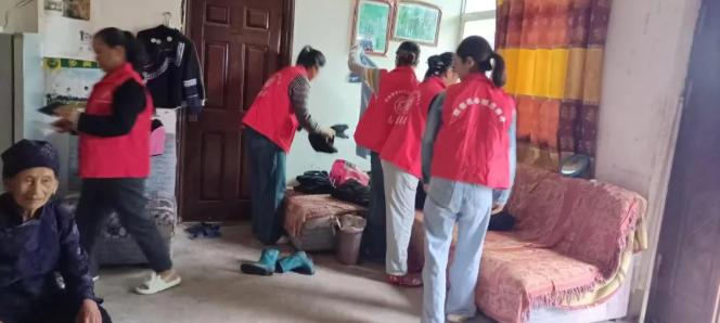 交流结束后,志愿者们迅速切换角色,变身 “环境美容师”,为老人改善居住环境。大家分工协作,有的手持扫帚清扫庭院、清理房前屋后的垃圾落叶;有的拿着抹布擦拭门窗、桌椅,不放过任何一个卫生死角;有的则帮助行动不便的老人洗晒被褥、整理床铺、归置杂物。经过近两个小时的忙碌,原本略显杂乱的屋子变得整洁亮堂,居住环境焕然一新。
